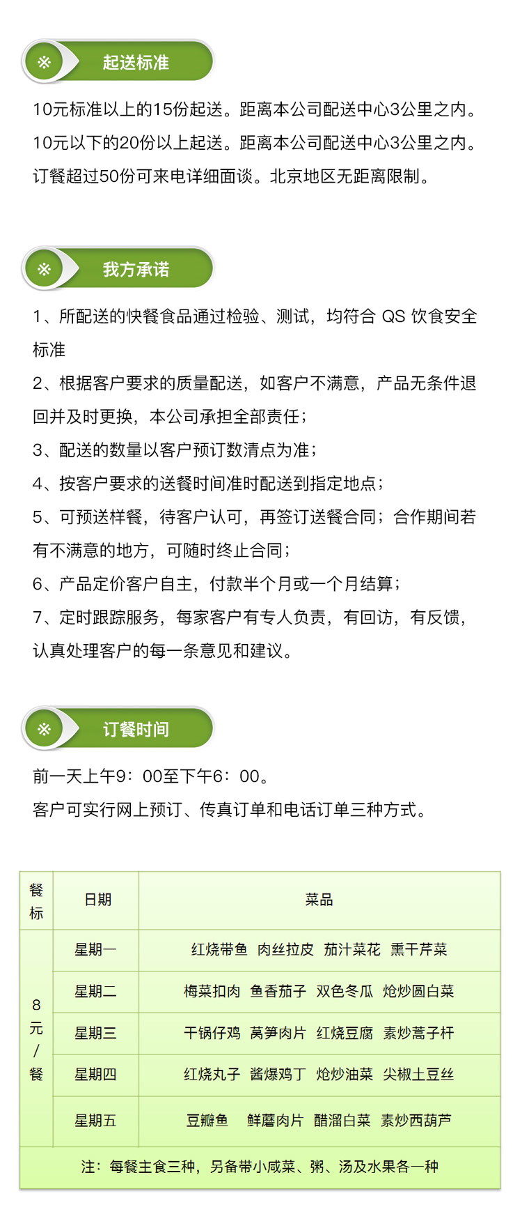 1.所配送的快餐食品通過(guò)檢驗(yàn)、測(cè)試,均符合QS飲食安全標(biāo)準(zhǔn);